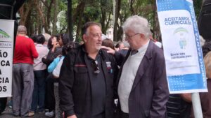 O delegado Rodolfo Roli, responsável pelo Núcleo de Atendimento à Pessoa Idosa da Polícia Civil, está presente no evento e orientando os participantes com dicas de prevenção a golpes e fraudes, crime que tem tido como alvo frequente o público da terceira idade.
