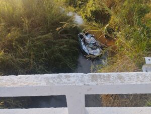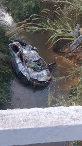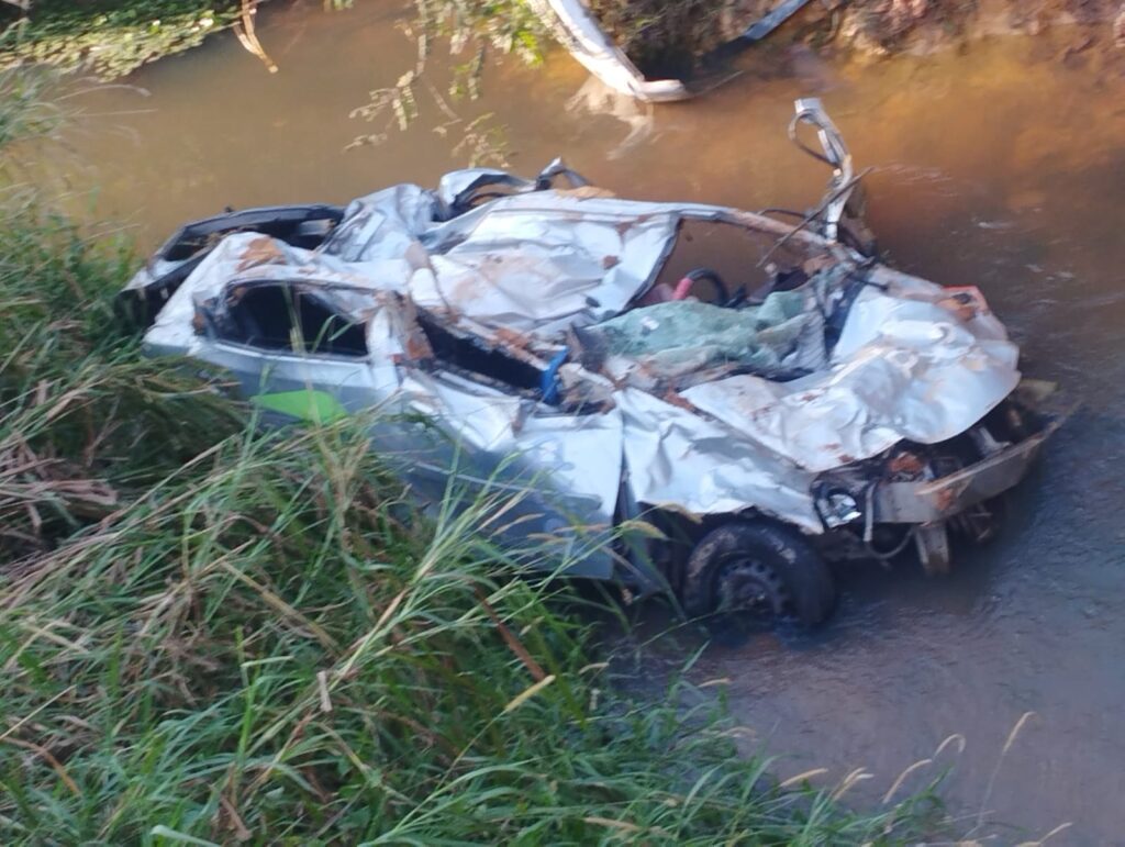 Na tarde dessa terça-feira, 19/08, por volta de 14h30minutos, o motorista de um Etios perdeu o controle da direção e o carro caiu de uma ponte no km 51 da BR 267, em Maripá de Minas, Zona da Mata mineira.
