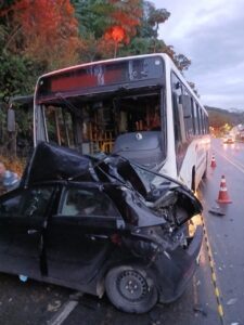 Testemunhas contaram aos militares que o condutor do automóvel perdeu o controle direcional, vindo a colidir lateralmente contra a parte frontal do coletivo.