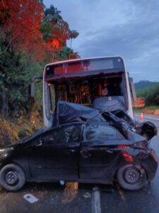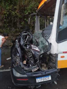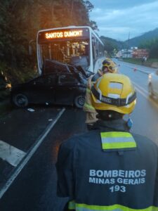 Segundo os bombeiros, “dois passageiros do ônibus apresentavam escoriações na face; ambos foram atendidos pela equipe do SAMU e encaminhados ao Hospital de Santos Dumont para avaliação médica. As equipes atuaram na desenergização dos veículos, bem como no isolamento e na devida sinalização da via.”