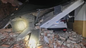 Ainda segundo os militares, “a estrutura atingiu dois carros e uma motocicleta, causando prejuízos materiais significativos aos proprietários. Além disso, o colapso provocou danos à parede de um cômodo. O local permanecerá isolado até a vistoria de um engenheiro. Como o desabamento interditou o único acesso ao imóvel, os Bombeiros abriram uma passagem em um muro para permitir a entrada dos moradores.”
