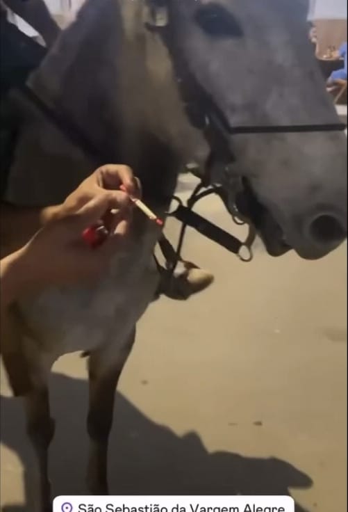 Na sexta-feira, 30/01, a Polícia Militar de Meio Ambiente foi ao município apurar a denúncia de maus-tratos contra animal doméstico. As imagens, compartilhadas em redes sociais da PM como um alerta, mostram um homem de 25 anos colocando, de forma forçada, um cigarro aceso na boca do animal, sendo que, na sequência, outro envolvido montou e conduziu o muar nessa condição.