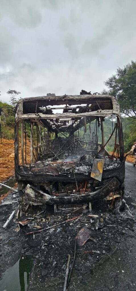 Imagens compartilhadas nas redes sociais na manhã desta segunda-feira, 13/04, mostram um ônibus em chamas na Estrada União e Indústria, em Juiz de Fora. O Corpo de Bombeiros foi chamado.
